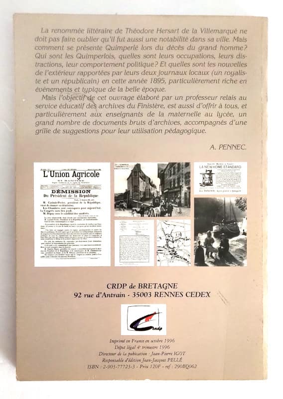 Titre : Les Quimperlois en 1895, centenaire de la mort de Théodore Hersart e la Villemarqué