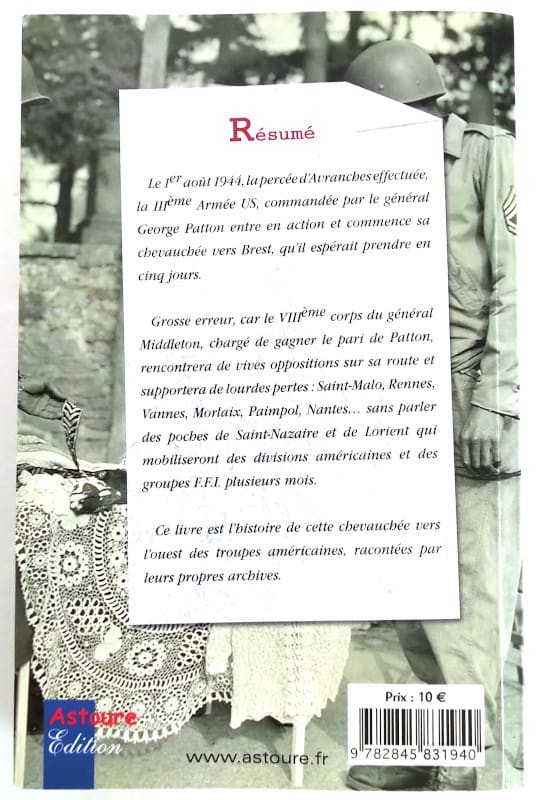 Le 1er août 1944, la percée d’Avranches effectuée, la IIIe Armée US, commandée par le général George Patton entre en action et commence sa chevauchée vers Brest, qu’il espérait prendre en cinq jours. Grosse erreur, car le VIIIème corps du général Middleton, chargé de gagner le pari de Patton, rencontrera de vives oppositions sur la route et supportera de lourdes pertes : Saint-Malo, Rennes, Vannes, Morlaix, Paimpol, Nantes… sans parler des poches de Saint-Nazaire et de Lorient qui mobiliseront des divisions américaines et des groupes F.F.I plusieurs mois. Ce livre est l’histoire de cette chevauchée vers l’ouest des troupes américaines, racontées par leurs propres archives.