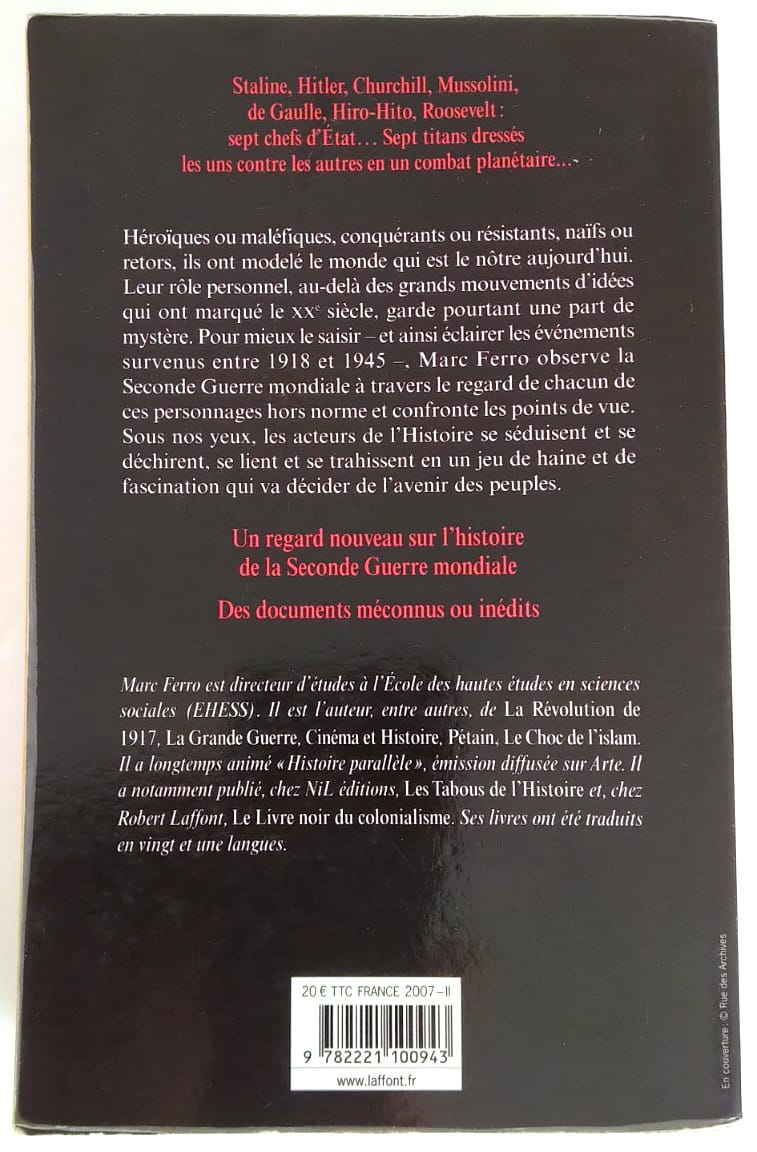 Staline, Hitler, Churchill Mussolini, de Gaulle. Hiro-Hito. Roosevelt . Sept chefs d’État. Sept titans dressés les uns contre les autres en un combat planétaire…