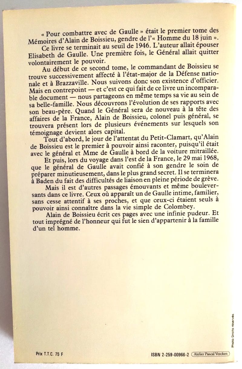 Au début de ce second tome, le commandant de Boissieu se trouve successivement affecté à l’état-major de la Défense nationale et à Brazzaville. Nous suivons donc son existence d’officier. Mais en contrepoint — et c’est ce qui fait de ce livre un incomparable document — nous partageons en même temps sa vie au sein de sa belle-famille. Nous découvrons l’évolution de ses rapports avec son beau-père. Quand le Général sera de nouveau à la tête des affaires de la France, Alain de Boissieu, colonel puis général, se trouvera présent lors de plusieurs événements sur lesquels son témoignage devient alors capital.