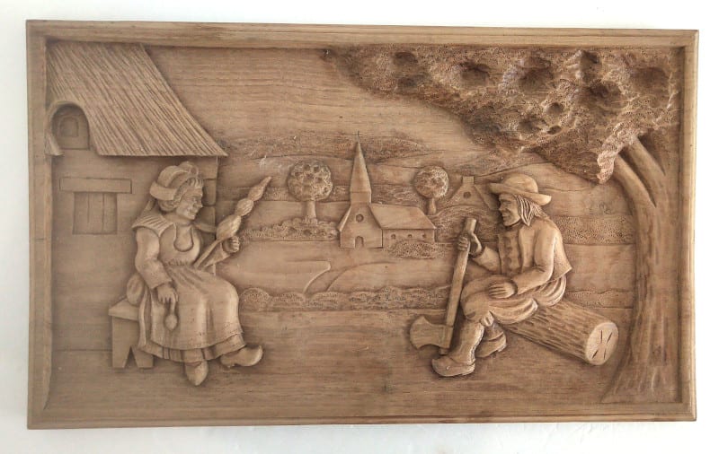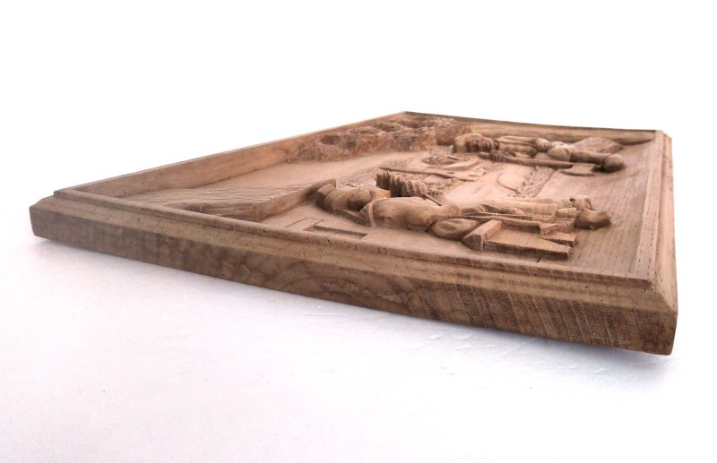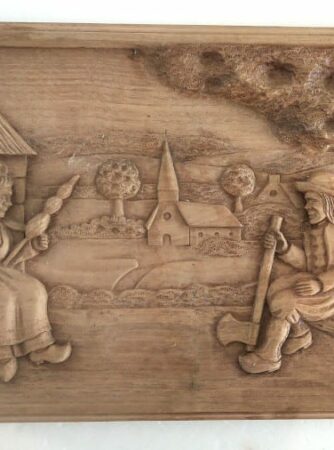 Tableau « Scène de vie en Bretagne » en bois sculpté en relief