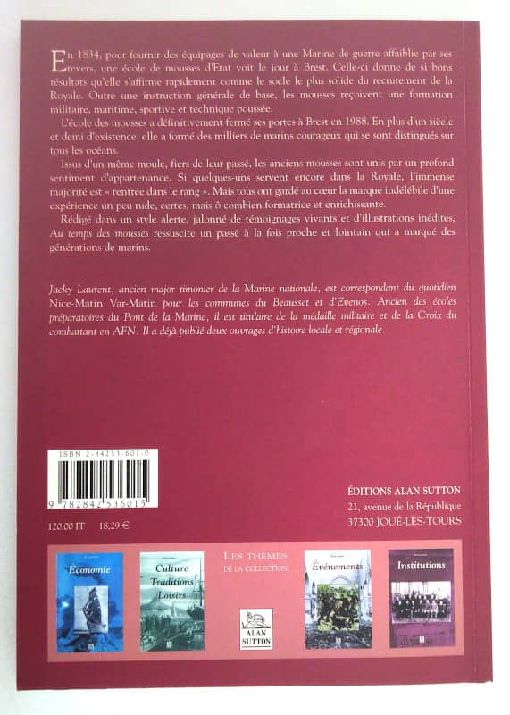 En 1834, pour fournir des équipages de valeur à une Marine de guerre affaiblie par ses revers, une école de mousses d’Etat voit le jour à Brest. Celle-ci donne de si bons résultats qu’elle s’affirme rapidement comme le socle le plus solide du recrutement de la Royale. Outre une instruction générale de base, les mousses reçoivent une formation militaire, maritime, sportive et technique poussée. L’école des mousses a définitivement fermé ses portes à Brest en 1988. En plus d’un siècle et demi d’existence, elle a formé des milliers de marins courageux qui se sont distingués sur tous les océans. Issus d’un même moule, fiers de leur passé, les anciens mousses sont unis par un profond sentiment d’appartenance. Si quelques-uns servent encore dans la Royale, l’immense majorité est » rentrée dans le rang « . Mais tous ont gardé au cœur la marque indélébile d’une expérience un peu rude, certes, mais ô combien formatrice et enrichissante. Rédigé dans un style alerte, jalonné de témoignages vivants et d’illustrations inédites, Au temps des mousses ressuscite un passé à la fois proche et lointain qui a marqué des générations de marins.