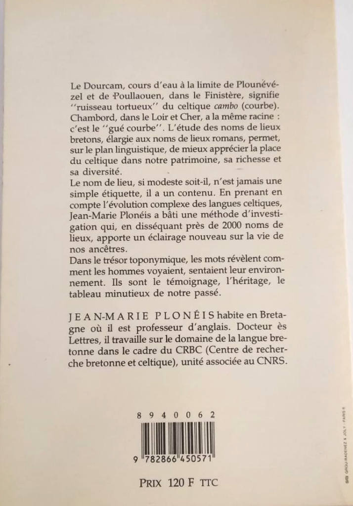 Titre : La toponymie celtique, l’origine des noms de lieux en Bretagne