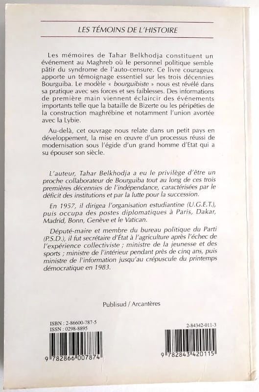 Les mémoires de Tahar Belkhodja constituent un événement au Maghreb où le personnel politique semble pâtir du syndrome de l’auto-censure. Ce livre courageux apporte un témoignage essentiel sur les trois décennies Bourguiba. Le modèle « bourguibiste » nous est révélé dans sa pratique avec ses forces et ses faiblesses. Des informations de première main viennent éclaircir des événements importants telle que la bataille de Bizerte ou les péripéties de la construction maghrébine et notamment l’union avortée avec la Lybie. Au-delà, cet ouvrage nous relate dans un petit pays en développement, la mise en œuvre d’un processus réussi de modernisation sous l’égide d’un grand homme d’Etat qui a su épouser son siècle.