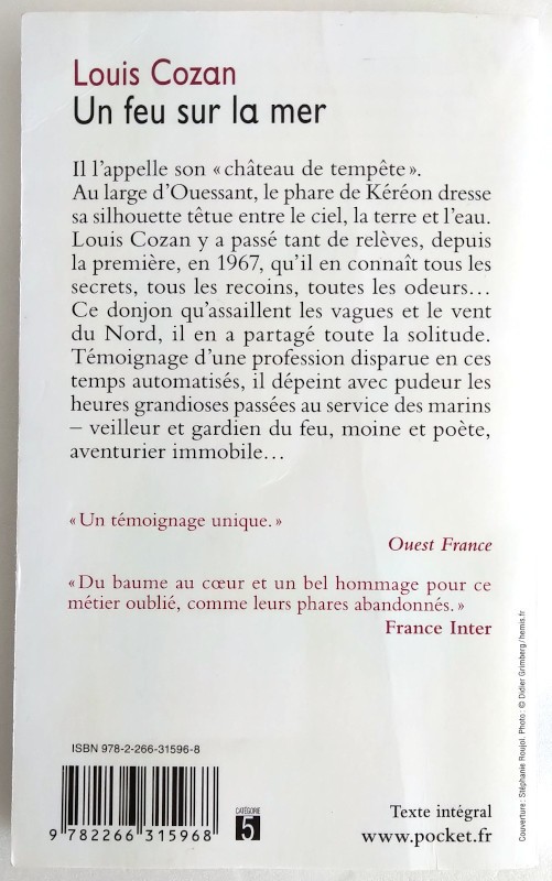 Louis Cozan est né à Ouessant. Après avoir navigué au long-cours sur des pétroliers, il est entré à peine âgé de vingt ans au service des Phares et Balises : une première relève mouvementée au phare de la Jument, puis Kéréon, le Stiff, le Créac’h, le phare de l’île de Sein … Phares ancrés sur des roches à peine affleurantes au cœur d’une mer toujours tourmentée ; plus rarement phares insulaires où travail et vie familiale tentent de se partager dans un équilibre précaire.