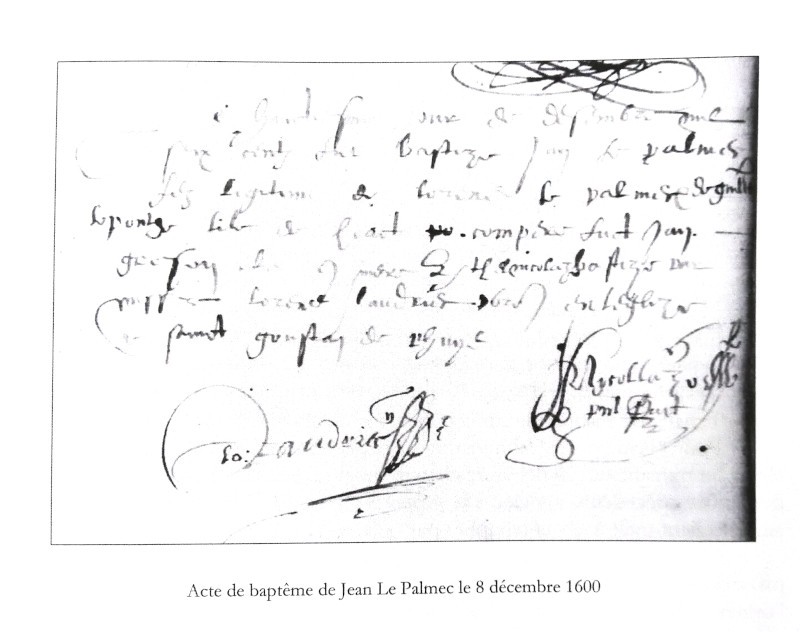 En explorant les registres de Saint-Goustan de Rhuys au XVIIème siècle, on trouve un certain nombre d’actes concernant des habitants des îles : 6 actes de baptême entre 1600 et 1674, 12 actes de décès entre 1636 et 1682 et 14 actes de mariage entre 1641 et 1689. Le plus ancien semble être l’acte de baptême de Jean Le Palmec le 8 décembre 1600. Le prêtre qui officie est Laurent LAUDRIEC.