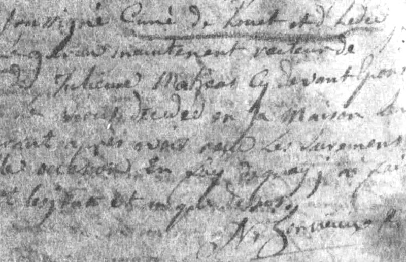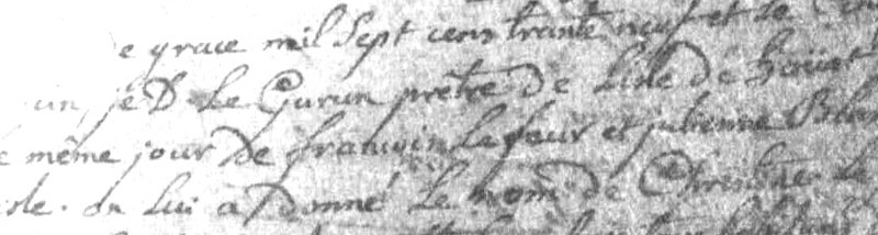 Le dimanche 3 décembre 1628, Pierre LE SEVEN, prêtre de la paroisse, baptise Olivier Mahéas, fils de Jean Mahéas et de Guillemette Le Roux.
